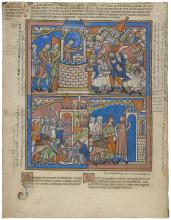 ca. 1244–1254Parched, The Gates of Gaza, Shear Betrayal, Samson Blinded, Old Testament Miniatures, France, Paris, 1240s, MS M.638 (fol. 15r) -
