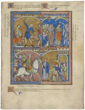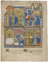 ca. 1244–1254David's Response, David Anointed King of Judah, Ishbosheth Made King of Israel, Old Testament Miniatures, France, Paris, 1240s, MS M.638 (fol. 36r)