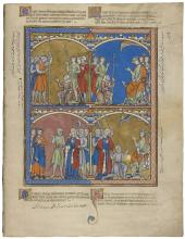 ca. 1244–1254The King is Displeased, The Tribes under One King, The Conquest of Jerusalem, Old Testament Miniatures, France, Paris, 1240s, MS M.638 (fol. 38v) -