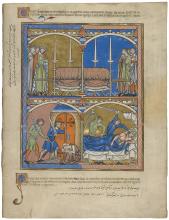 ca. 1244–1254A Stately Funeral, Rechab and Baanah, Traitors, Old Testament Miniatures, France, Paris, 1240s, MS M.638 (fol. 38r) -
