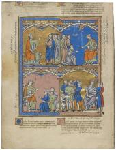 ca. 1244–1254David's Command to Ziba, David's Great Charity, Diplomacy, Shameful Treatment, Old Testament Miniatures, France, Paris, 1240s, MS M.638 (fol. 40v)