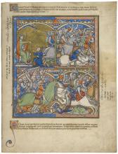 ca. 1244–1254David's Wrath, The Syrians Rally and Are Defeated, Old Testament Miniatures, France, Paris, 1240s, MS M.638 (fol. 41r)