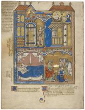ca. 1244–1254Bathsheba is Informed of Uriah's Death, David Weds Bathsheba, A Son is Born, The Lord is Displeased with David, Old Testament Miniatures, France, Paris, 1240s, MS M.638 (fol. 42v) -