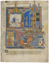ca. 1244–1254Joab Reproaches David, David Greets the People, Sheba's Rebellion, Judah Remains Loyal, Old Testament Miniatures, France, Paris, 1240s, MS M.638 (fol. 43r) -