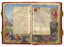 ca. 1517Crucifixion and Deposition, Prayer Book of Queen Claude de France, France, Tours, ca. 1517, MS M.1166 (fols. 13v-14) -