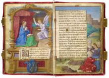 ca. 1517Annunciation, with the coat of arms of Queen Claude de France in the lower border and Visitation, Prayer Book of Queen Claude de France, France, Tours, ca. 1517, MS M.1166 (fols. 18v-19) -