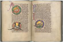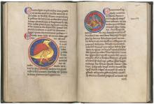 ca. 1185MS M.81, fols. 55v–56r, Worksop bestiary, England, possibly in Lincoln or York, ca. 1185.