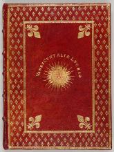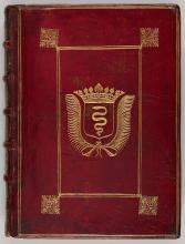 Red morocco, with individual gilt tooling and painted armorial, on: Pierre-Annet de Pérouse (1699–1763)